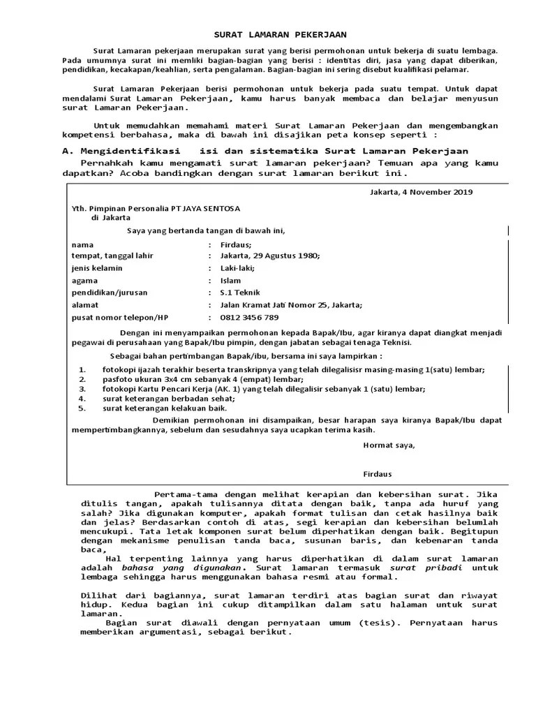 Contoh Soal Bahasa Indonesia Bab Surat Lamaran Pekerjaan / Materi Bahasa Indonesia Kelas 12 Bab 1 Portal Edukasi : Berikut ini adalah penjelasan tentang pengertian surat lamaran kerja beserta bagian bagian surat lamaran kerja, cara.. Kd yang harus kalian kuasai adalah :. Berikut ini adalah penjelasan tentang pengertian surat lamaran kerja beserta bagian bagian surat lamaran kerja, cara. Hal yang diperlukan dalam sebuah surat lamaran pekerjaan adalah. Kunci jawaban bahasa indonesia kelas 12 halaman 9 latihan semester. Setelah mempelajari modul pelajaran bahasa indonesia dengan materi surat lamaran pekerjaan,kompetensi dasar /.